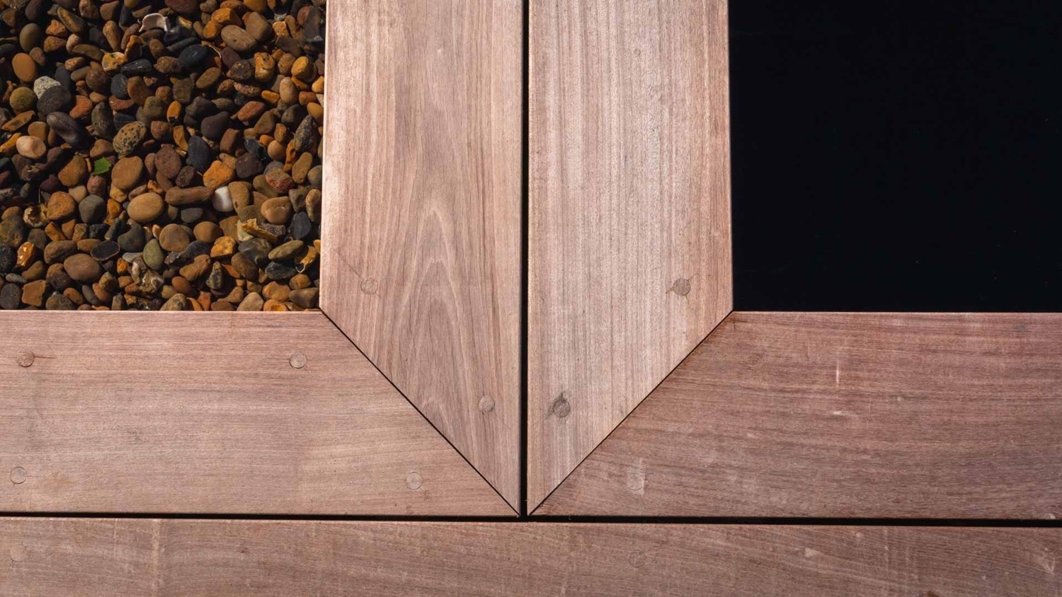 Granittrappe 1 meter bred fra lavt vand zone til land/træterrasse.