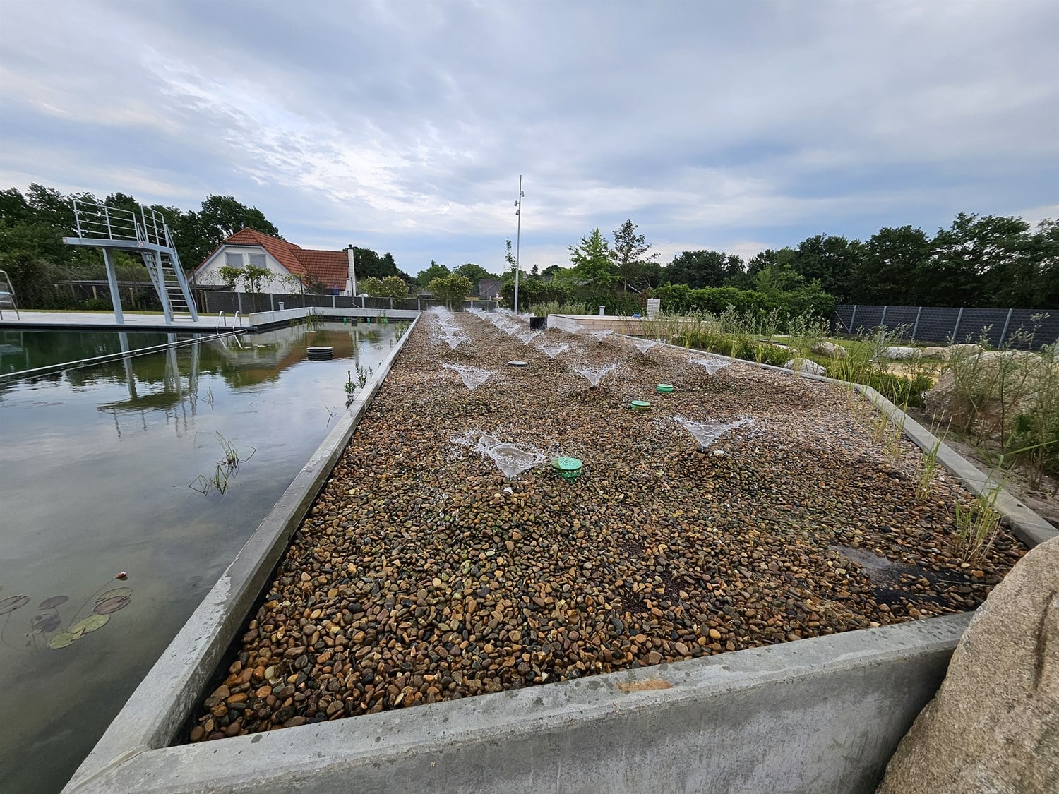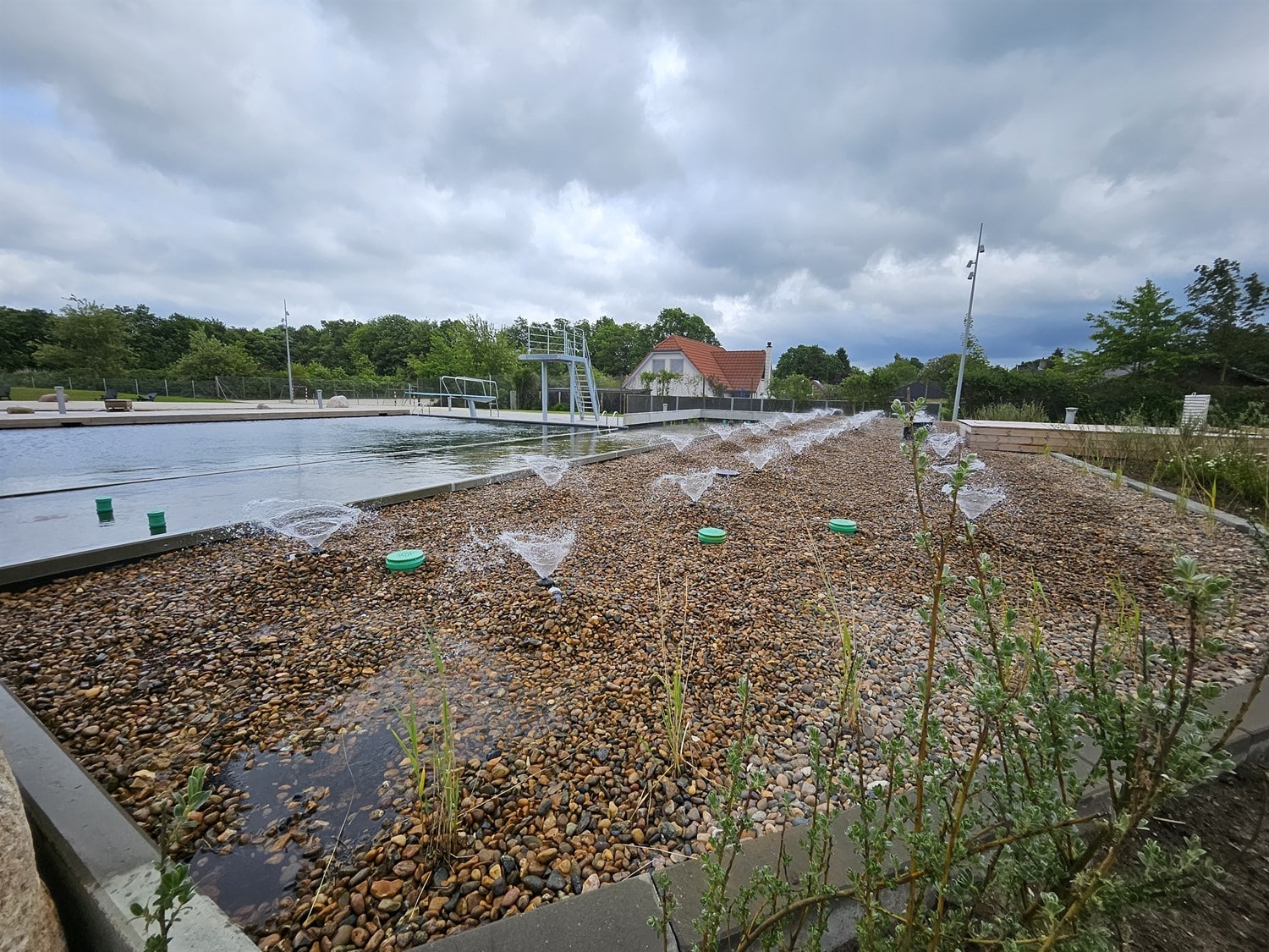 Vandet i det nye friluftsbad er levende – ikke sterilt – men det holdes rent af mikroorganismer, planter og naturlige filtrering materialer. Det skaber et mere naturligt og afbalanceret miljø for både børn og voksne. Du bader i klart vand, der minder mere om en sø – men med sikkerhed og tryghed som i et traditionelt bassin.