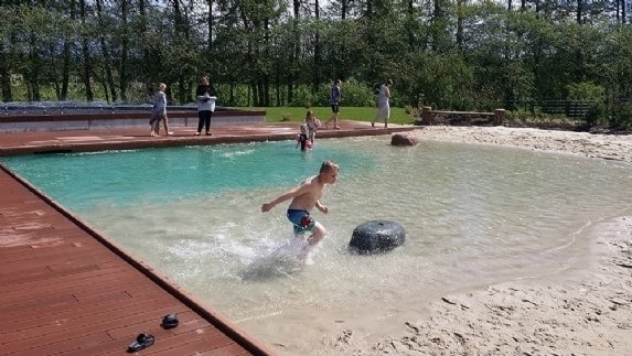 Danmarks første friluftsbad med grøn rensning åbnede for gæster foråret 2015.