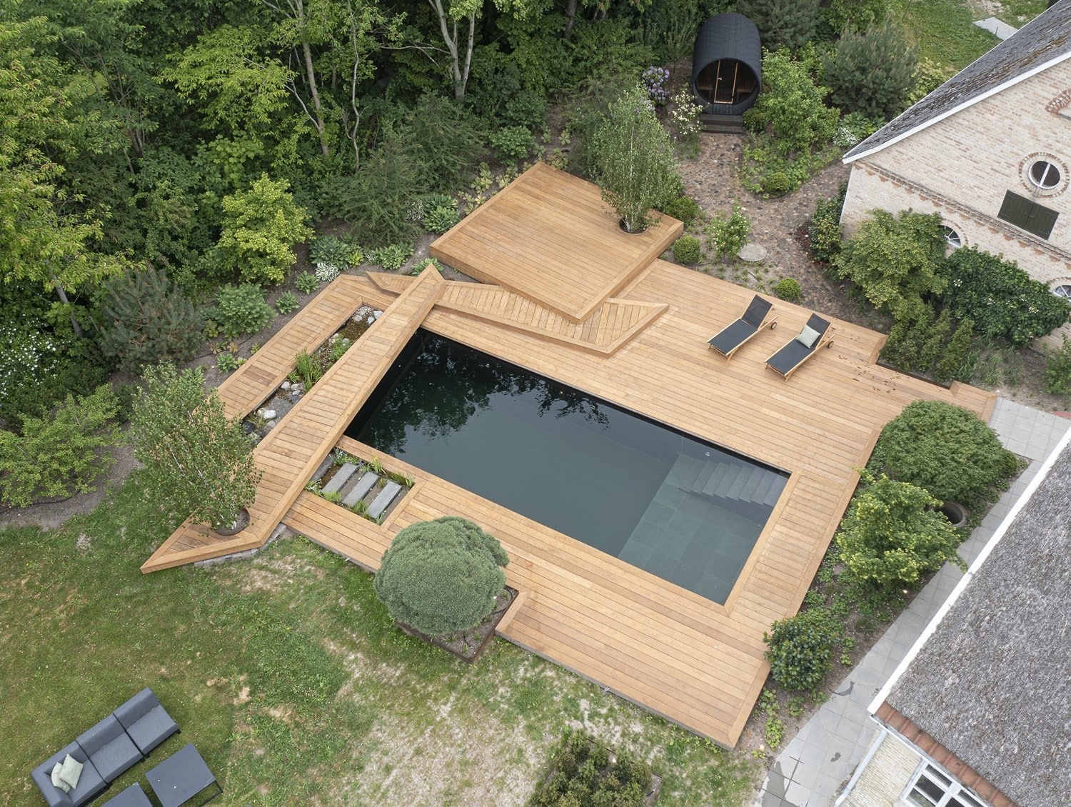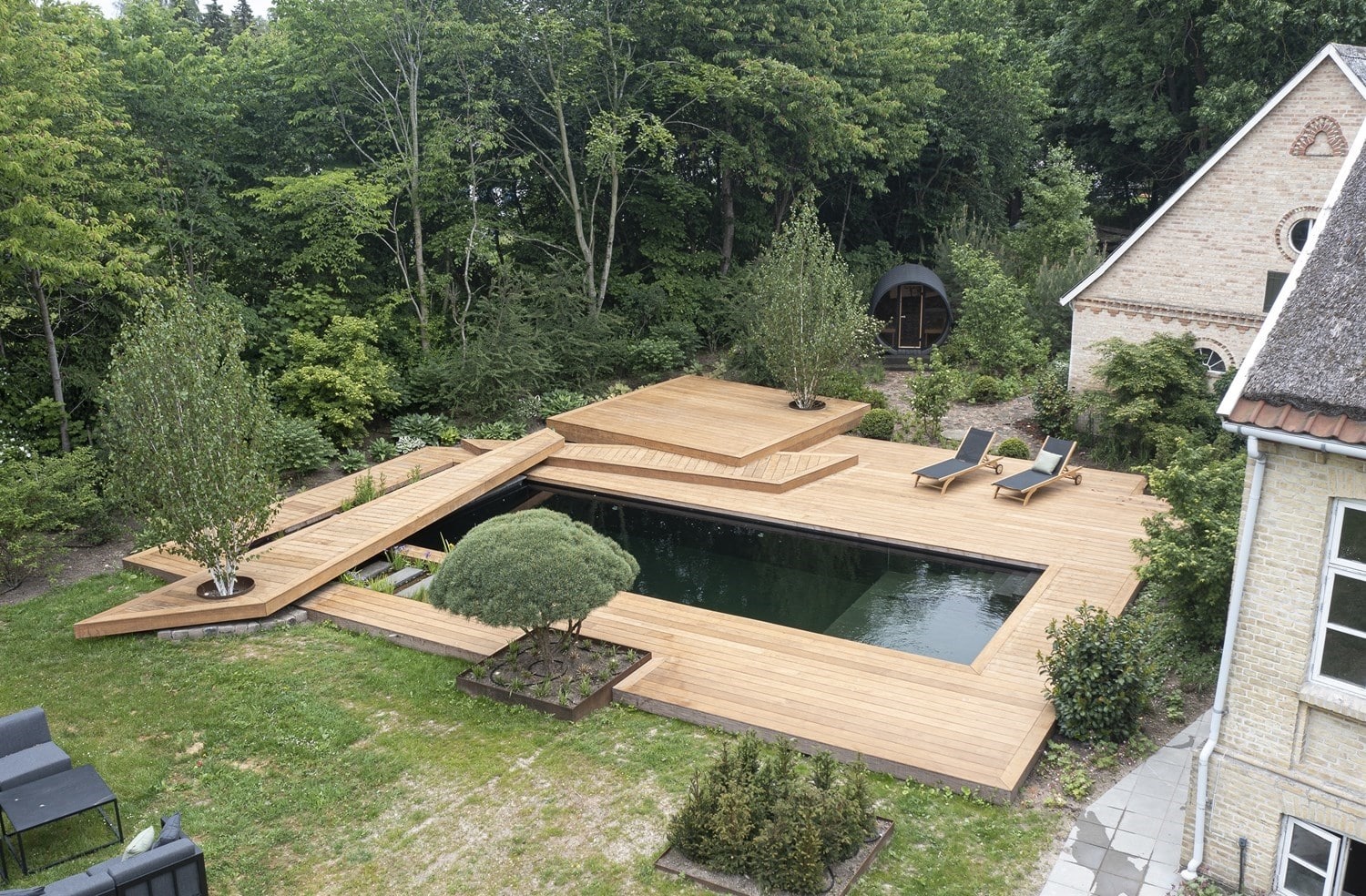 Nyd dette fantastiske anlæg anlæg designet af Tor Haddeland, Designhaver.dk som netop er taget i brug af familien i Farum.