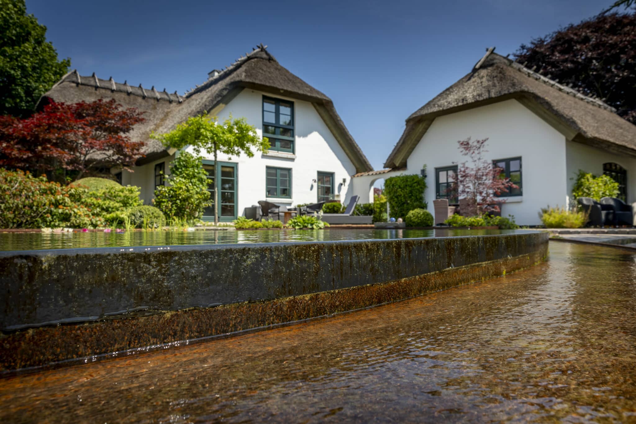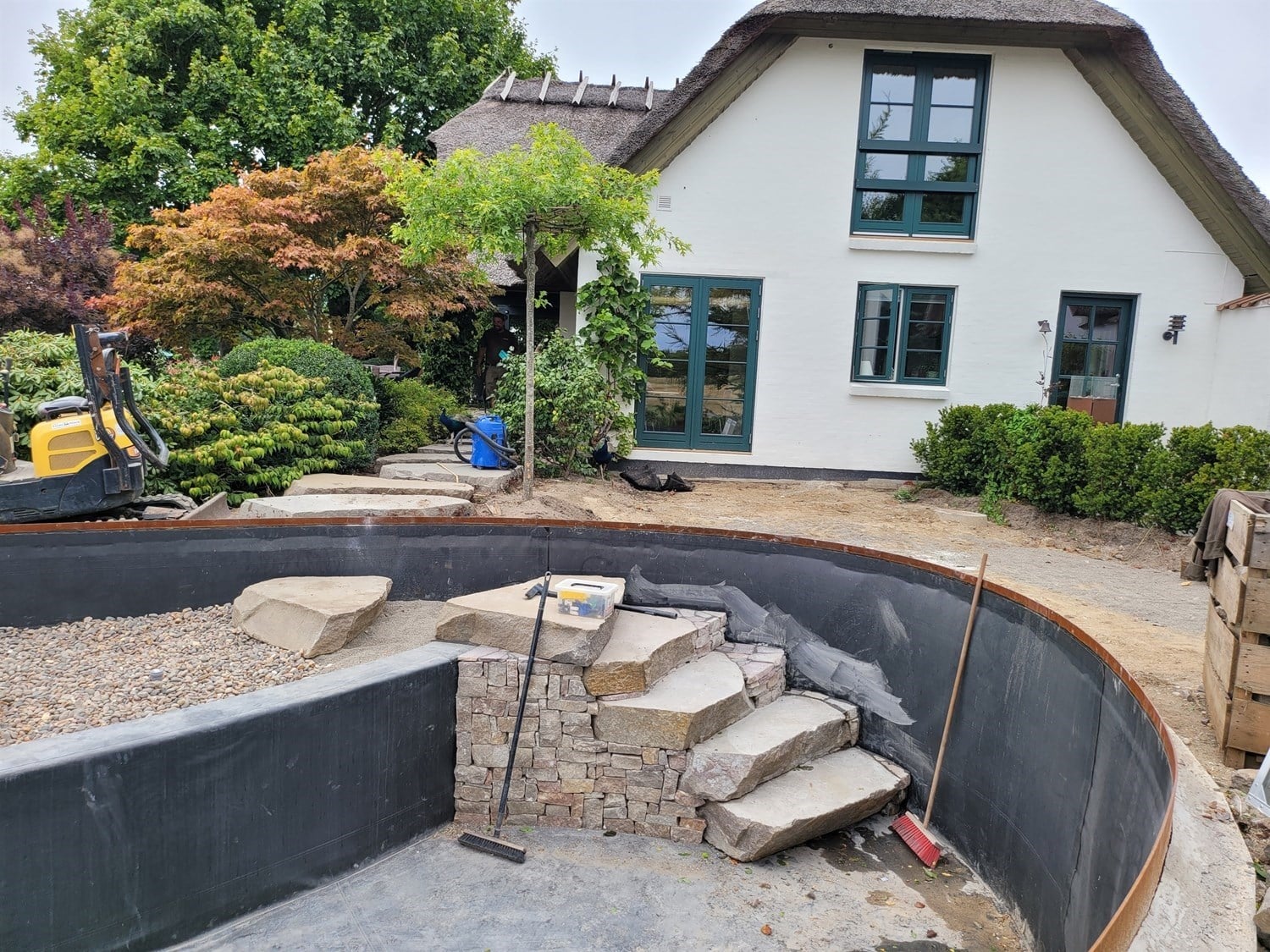 Infinity kant med vandopsamling er udført i stål som også danner overgang mellem land og vand.