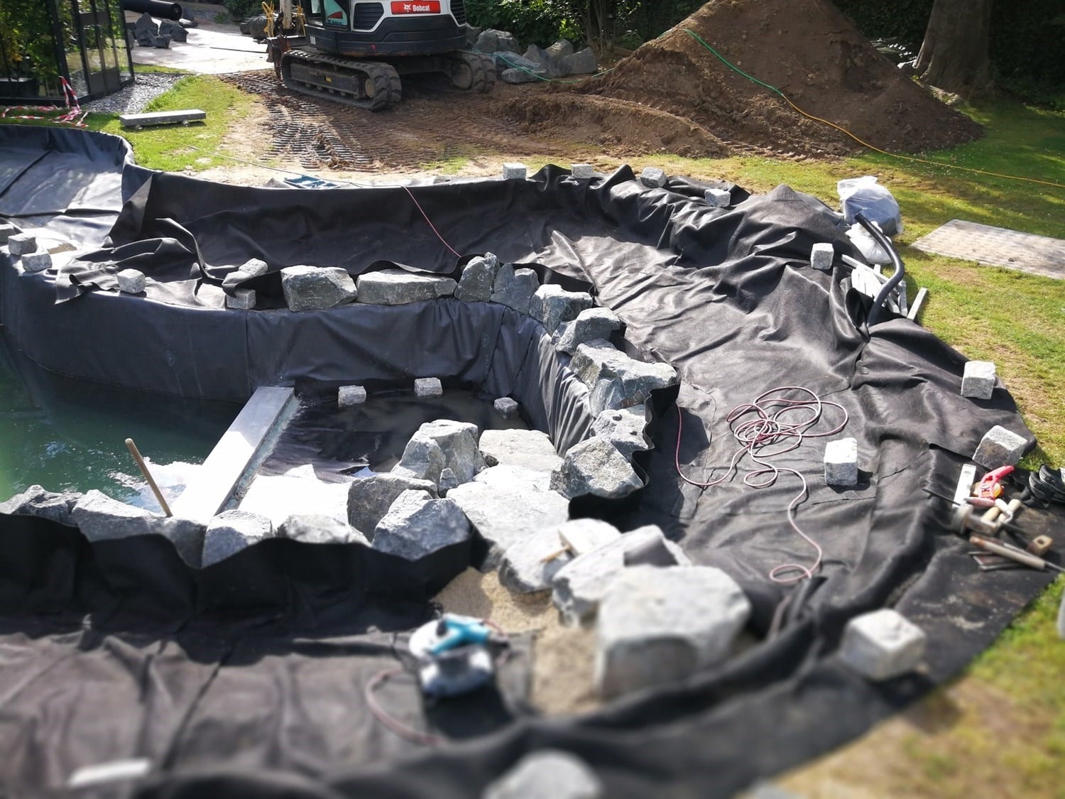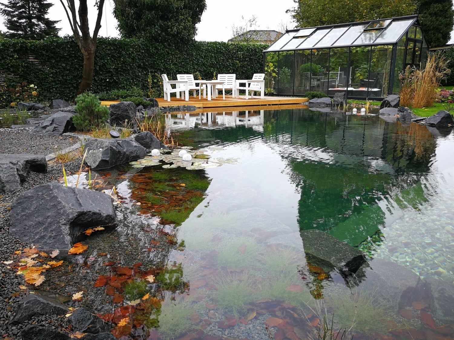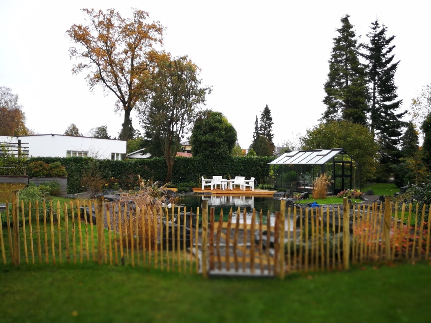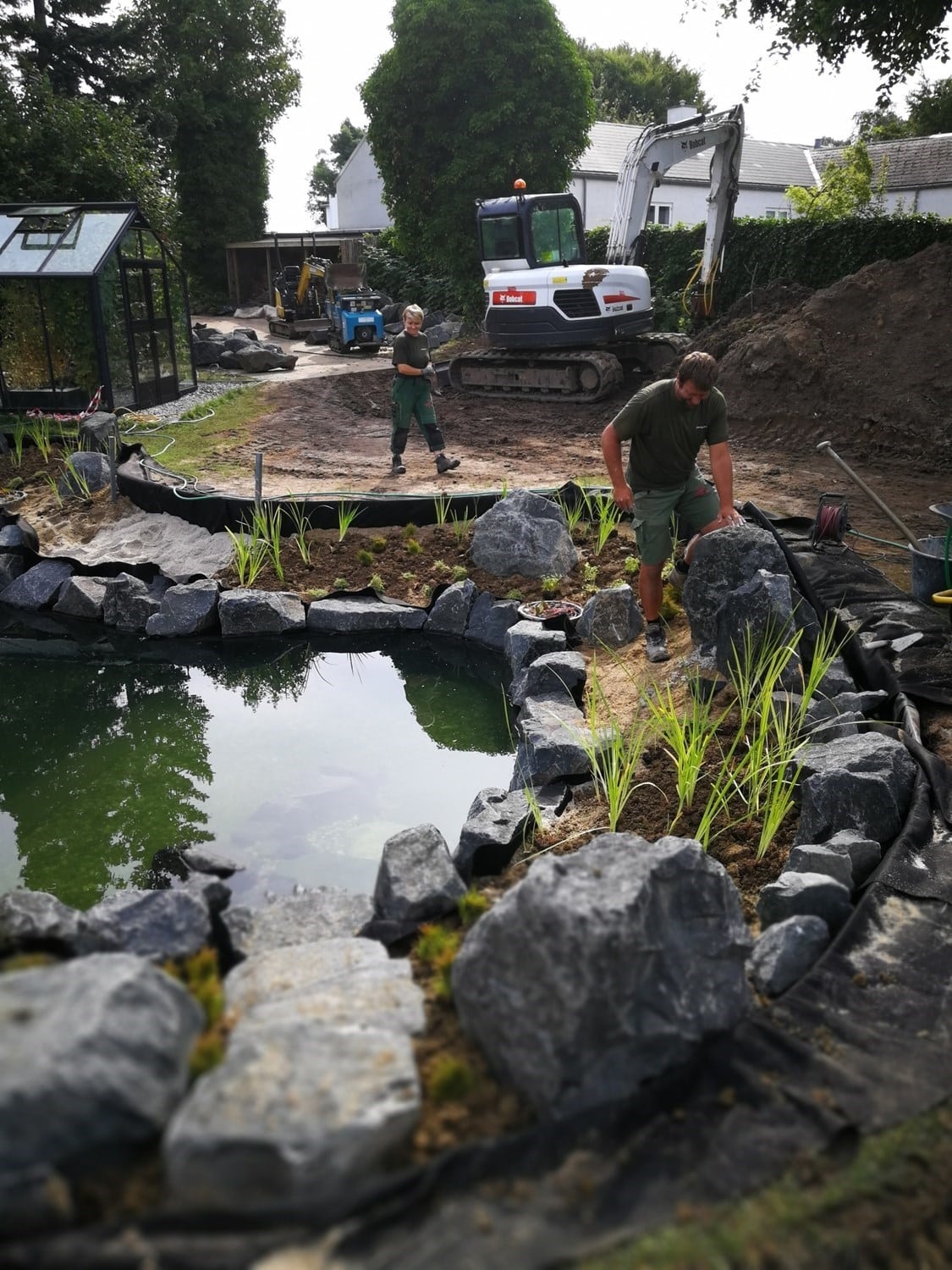 - Skimmersø areal ca. 15-20 m2 der indbygges bredzoner til vandplanter i skimmersøen 5 cm’s vanddybde i kanten og lavtvandsområde ca. 30 cm dybt foran skimmerfunktion
