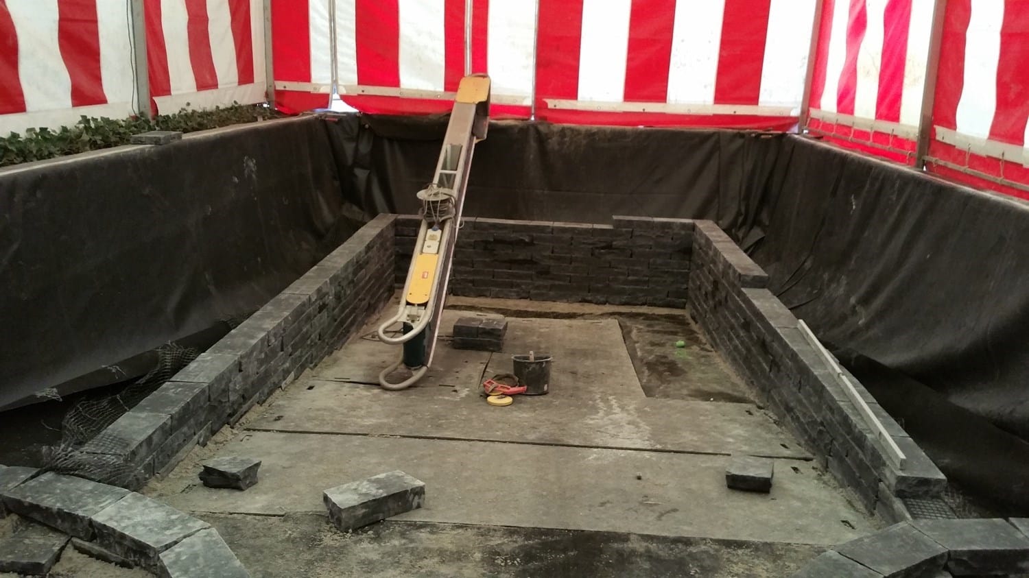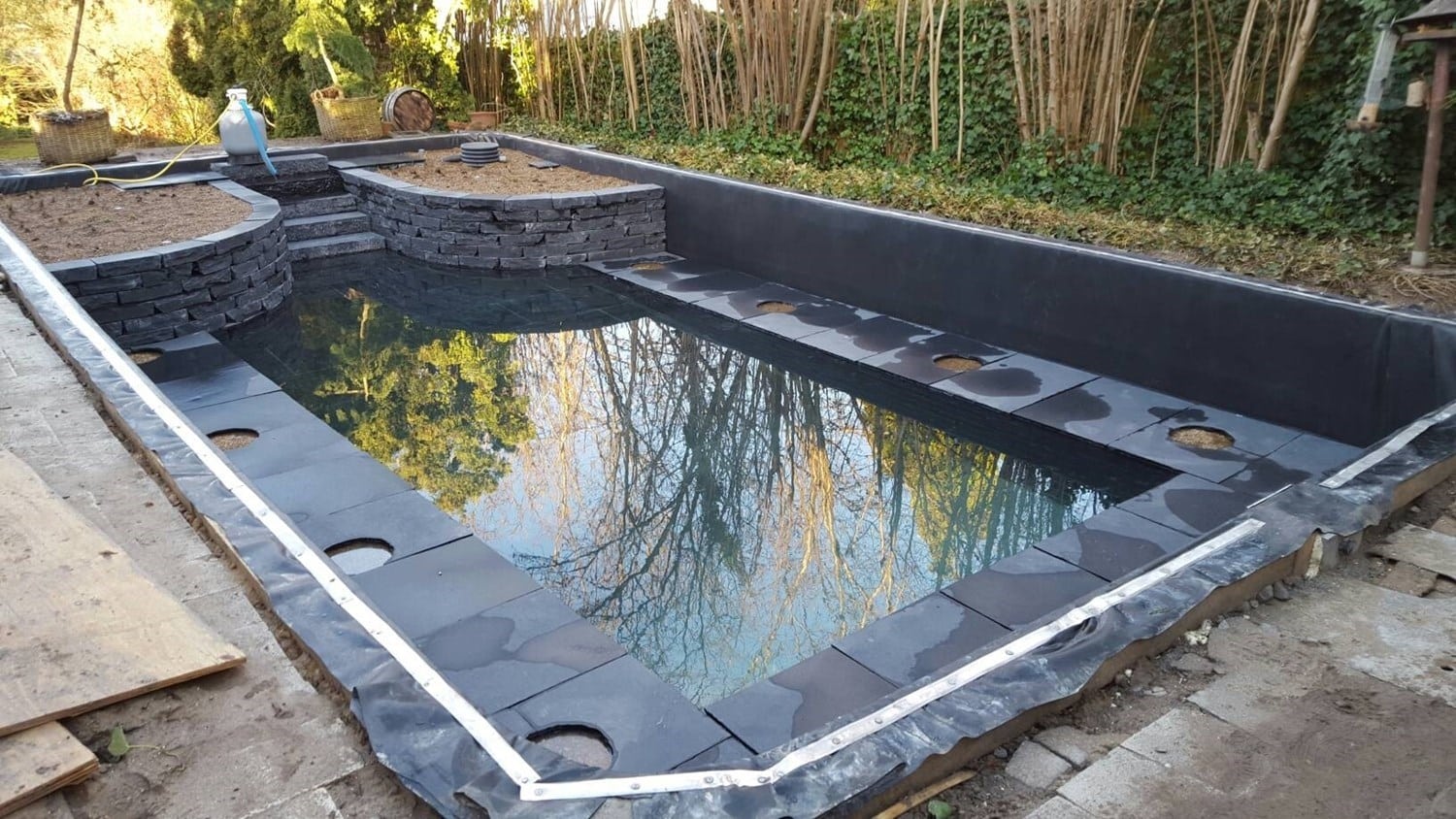 Vi har beklædt den eksisterende betonkonstruktion med geotekstil og EPDM gummidug.