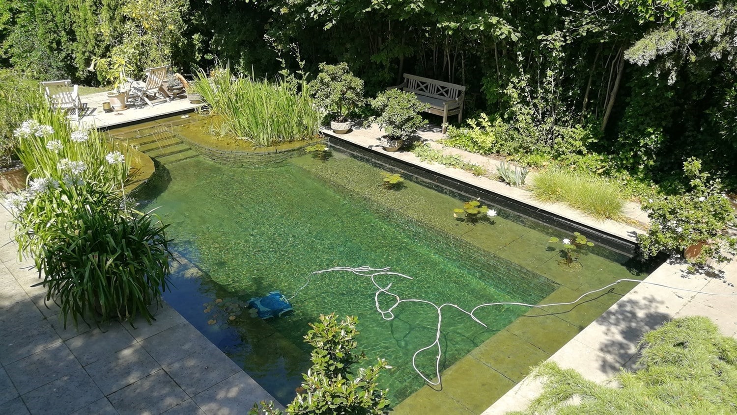 Kunden ønskede endvidere dekorative nøkkeroser på begge sider poolens langsider.