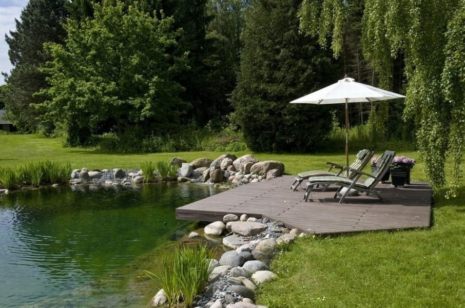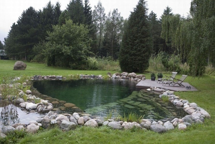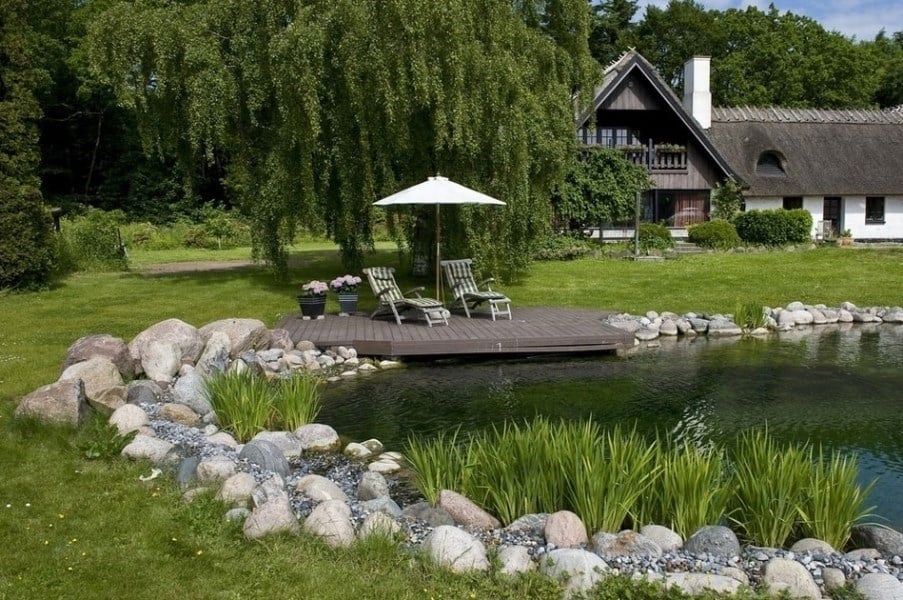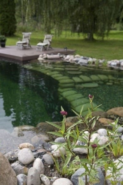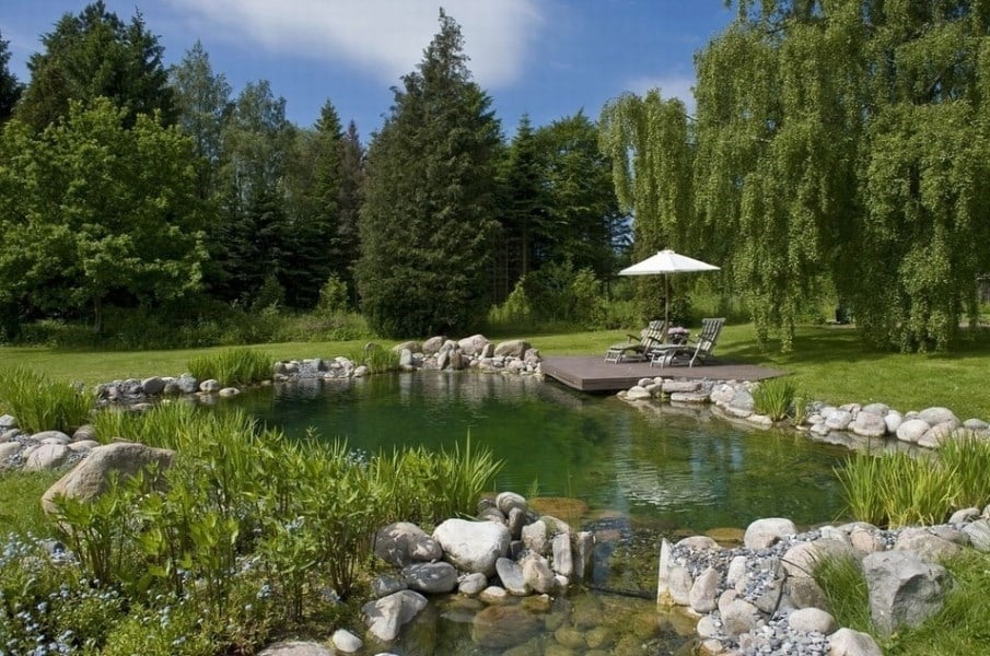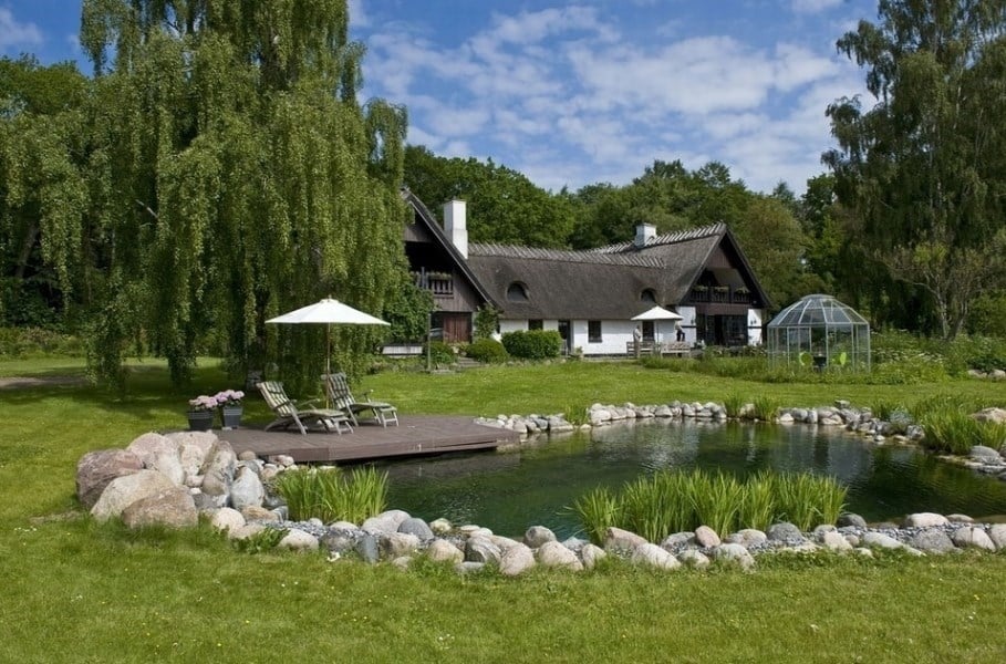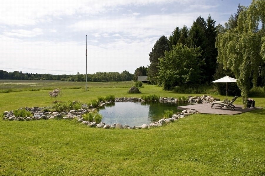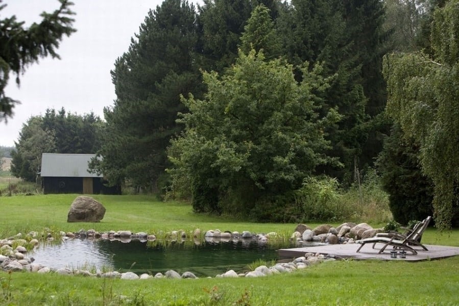 Landlig idyl og naturalistisk svømmesø. Hvem kan forestille sig en traditionel pool her? Svømmesøkonceptet giver de rette designmæssige muligheder, når der skal formgives i det naturlige landskab.