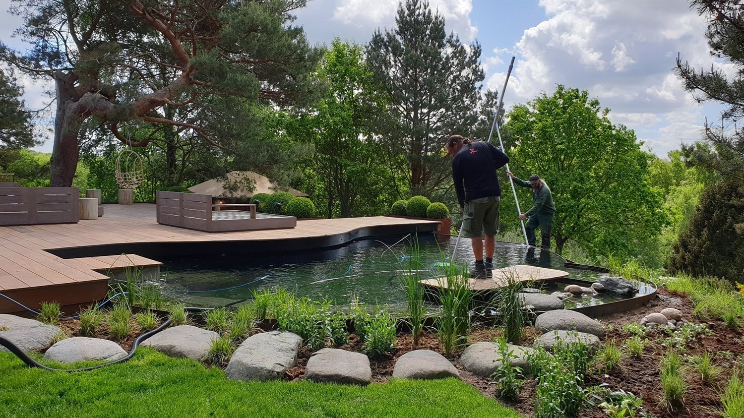 Skimmersøen er indbygget i søen i bredzonen, bag den lille svævende lille solterrasse. Så kan vi ikke lave det meget bedre!