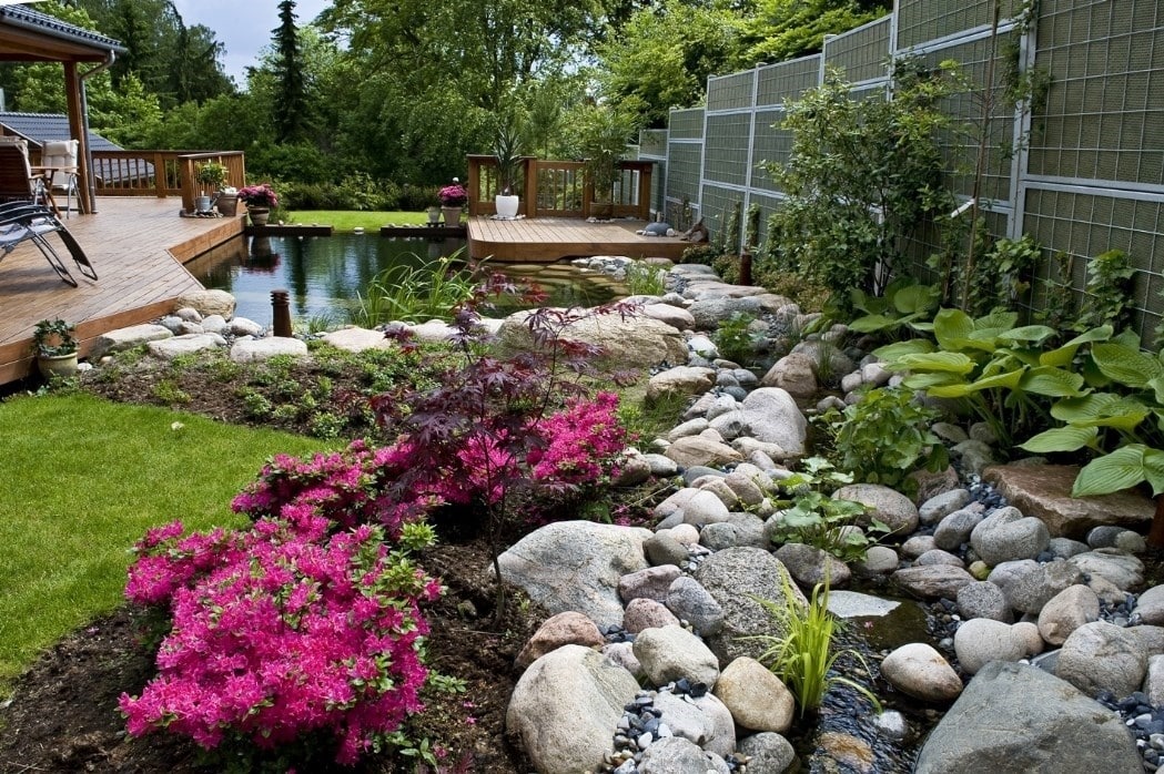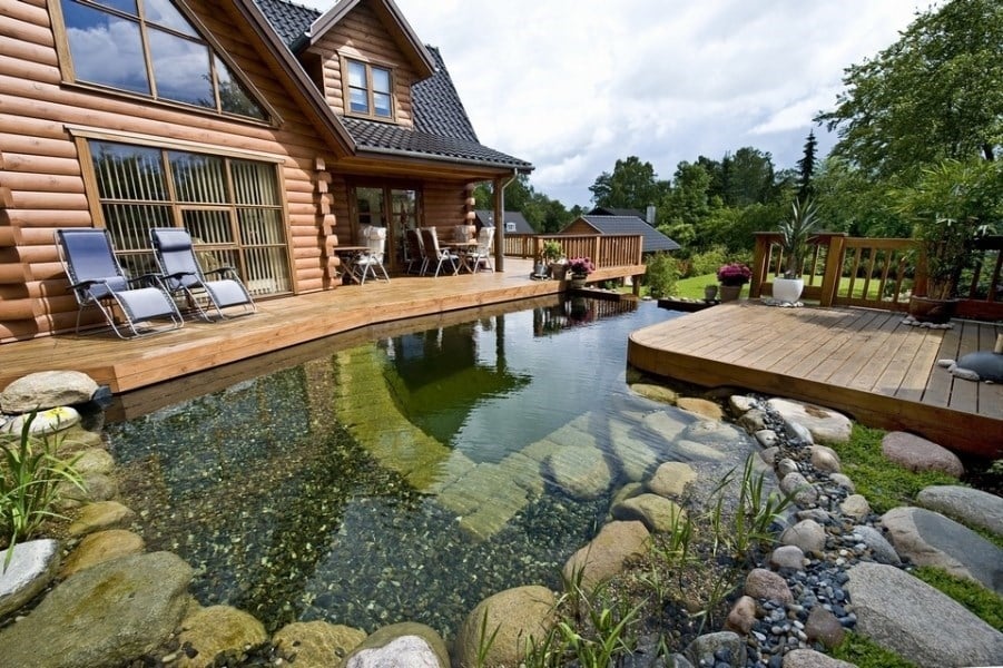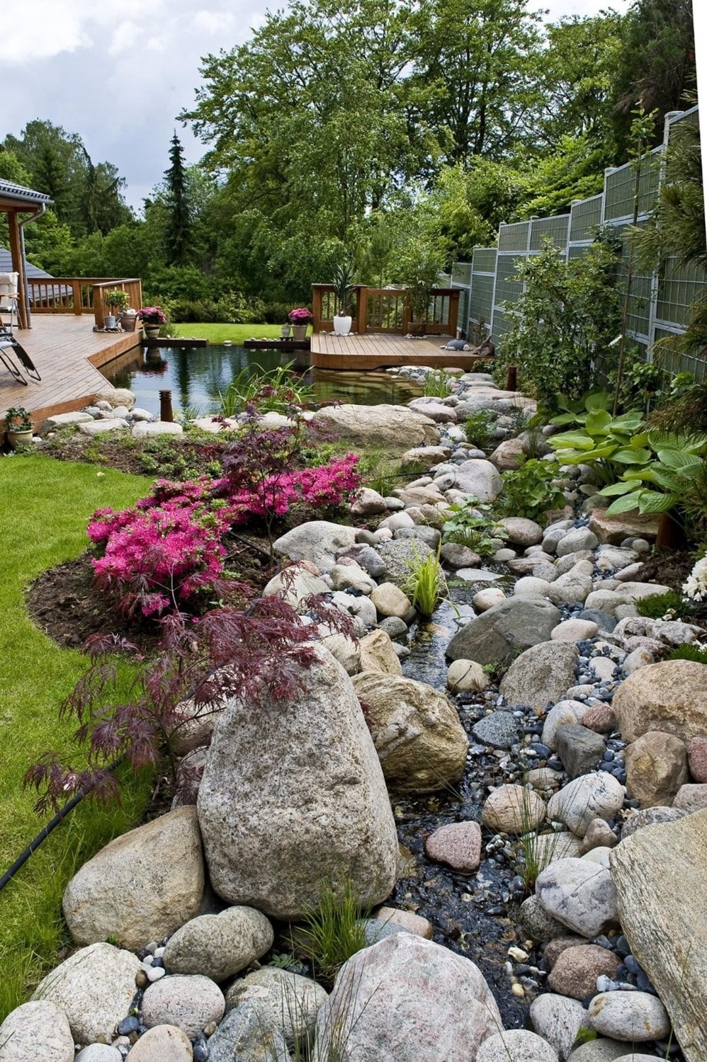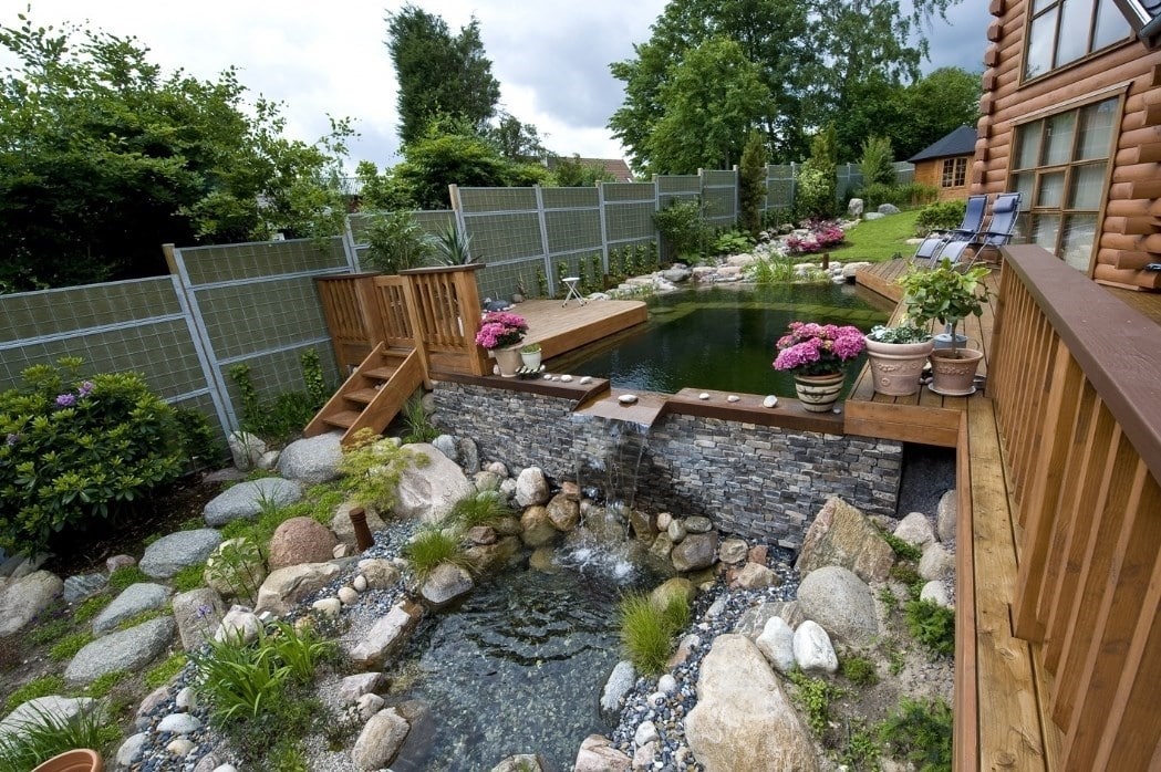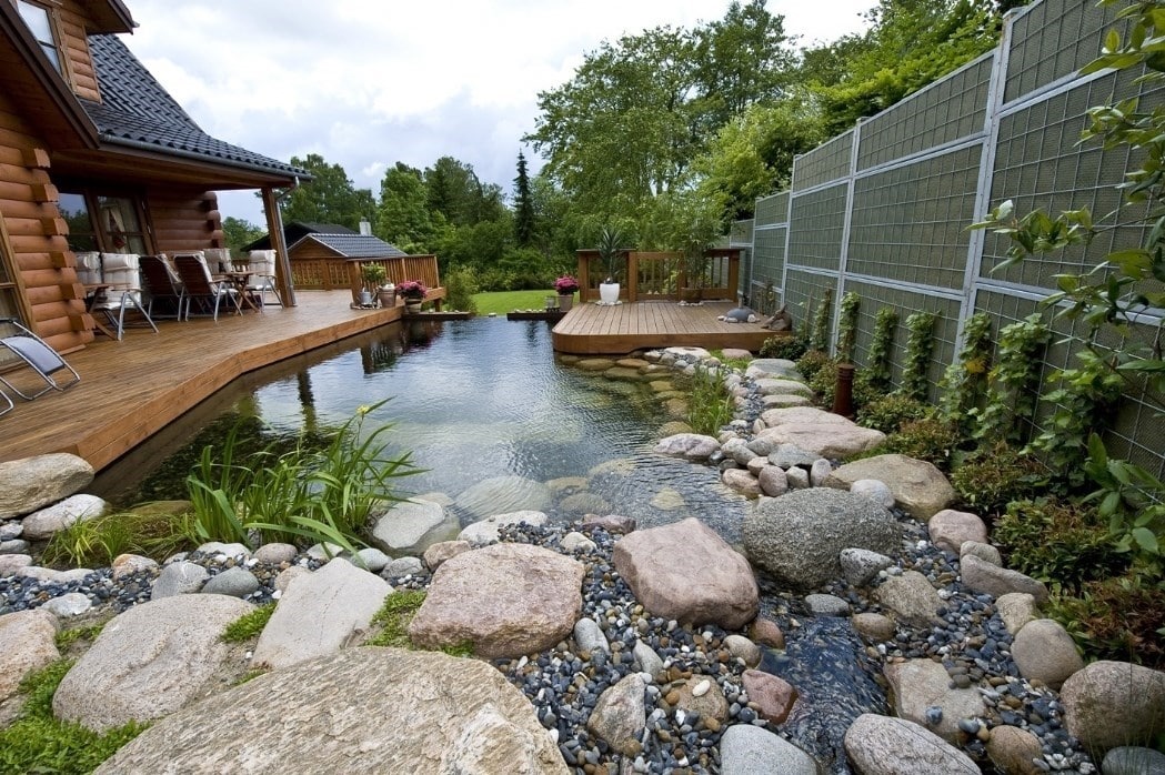 Indehaverne af denne svømmesø er ivrige badegæster i Furesøen tæt ved, men drømmen om eget badevand i haven og tilmed i helt rent og klart ferskvand er gjort til virkelighed med dette spændende og helt individuelle haveprojekt.