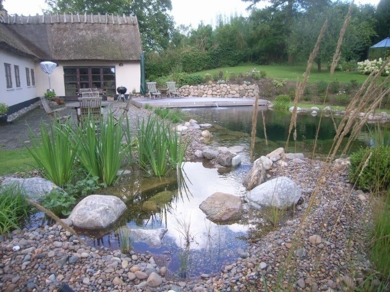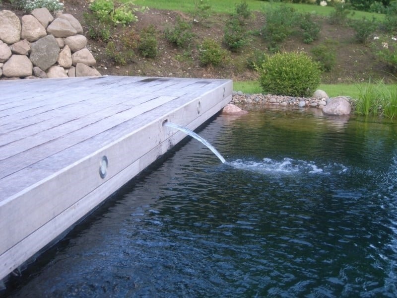 ​​Denne smukke og naturlige svømmesø er beliggende i tæt kontakt med opholdsterrassen i beton, ved den smukke beboelse. Der er tilbygget en træterrasse der sikrer direkte adgang (hovedspring til vandet.​